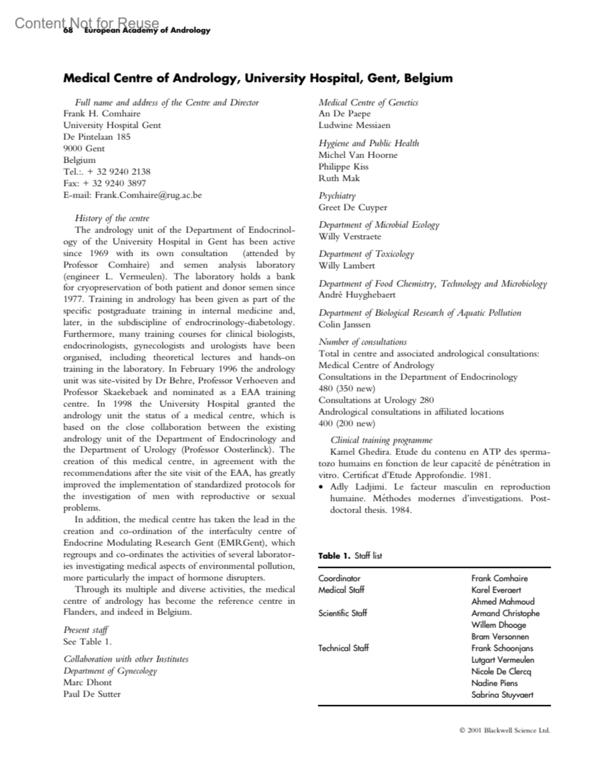 Medical Centre of Andrology, University Hospital, Gent, BelgiumInternational Journal of Andrology, Supplement 24:p 68-70, 2001.Copyright © 2001 Blackwell Science Ltd.