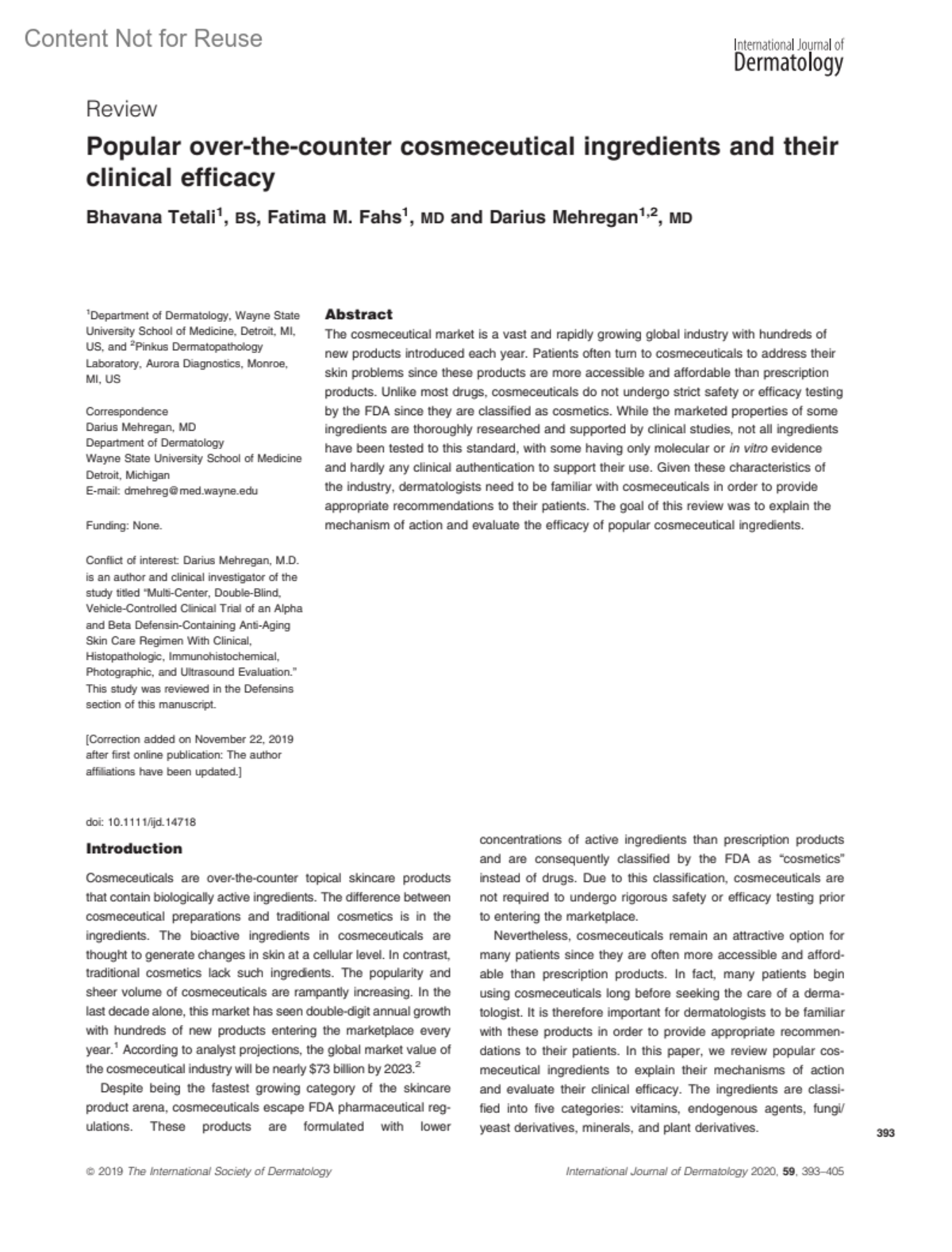 International Journal of Dermatology 59(4):p 393-405, April 2020. | DOI: 10.1111/ijd.14718