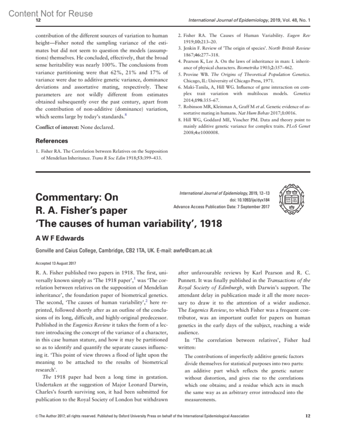 On R. A. Fisher’s paper ‘The causes of human variability’, 1918