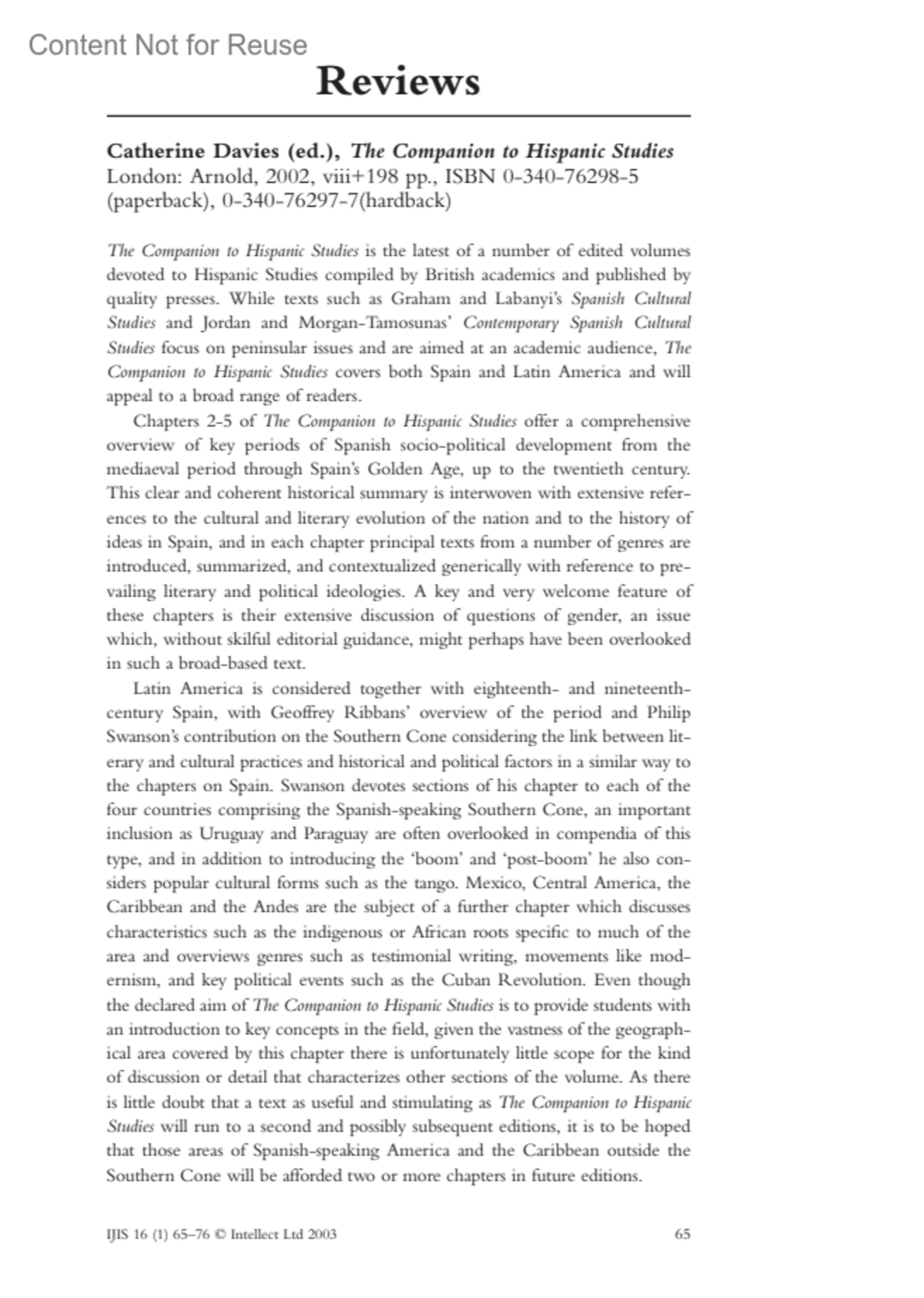 The Battle over Spanish between 1800 and 2000Language Ideologies and Hispanic IntellectualsLonghurst, AlexAuthor information1University of LeedsInternational Journal of Iberian Studies 16(1):p 68-72, March 2003.Copyright ©2003 Intellect Ltd