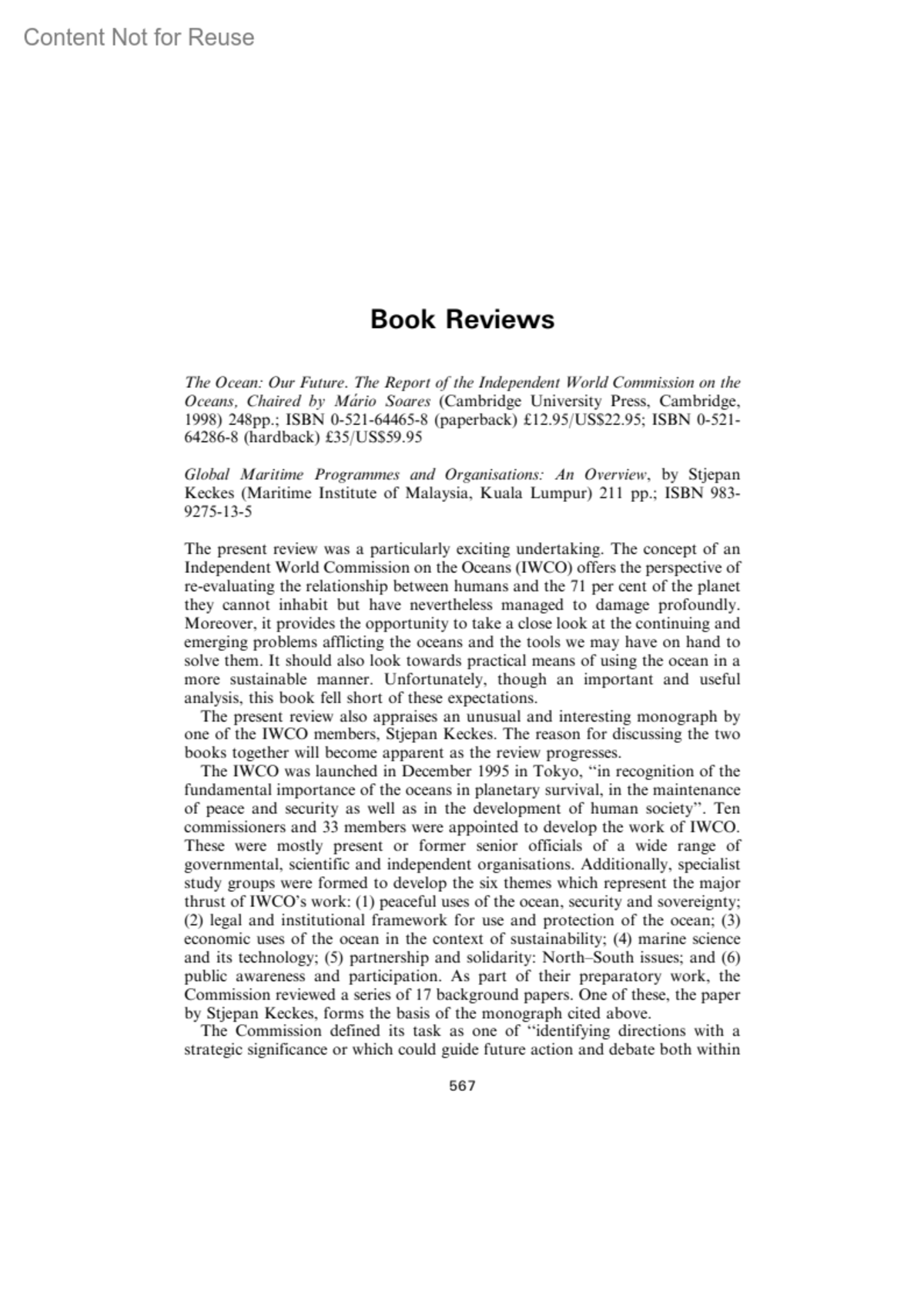 The International Journal of Marine & Coastal Law 14(4):p 567-571, December 1999.