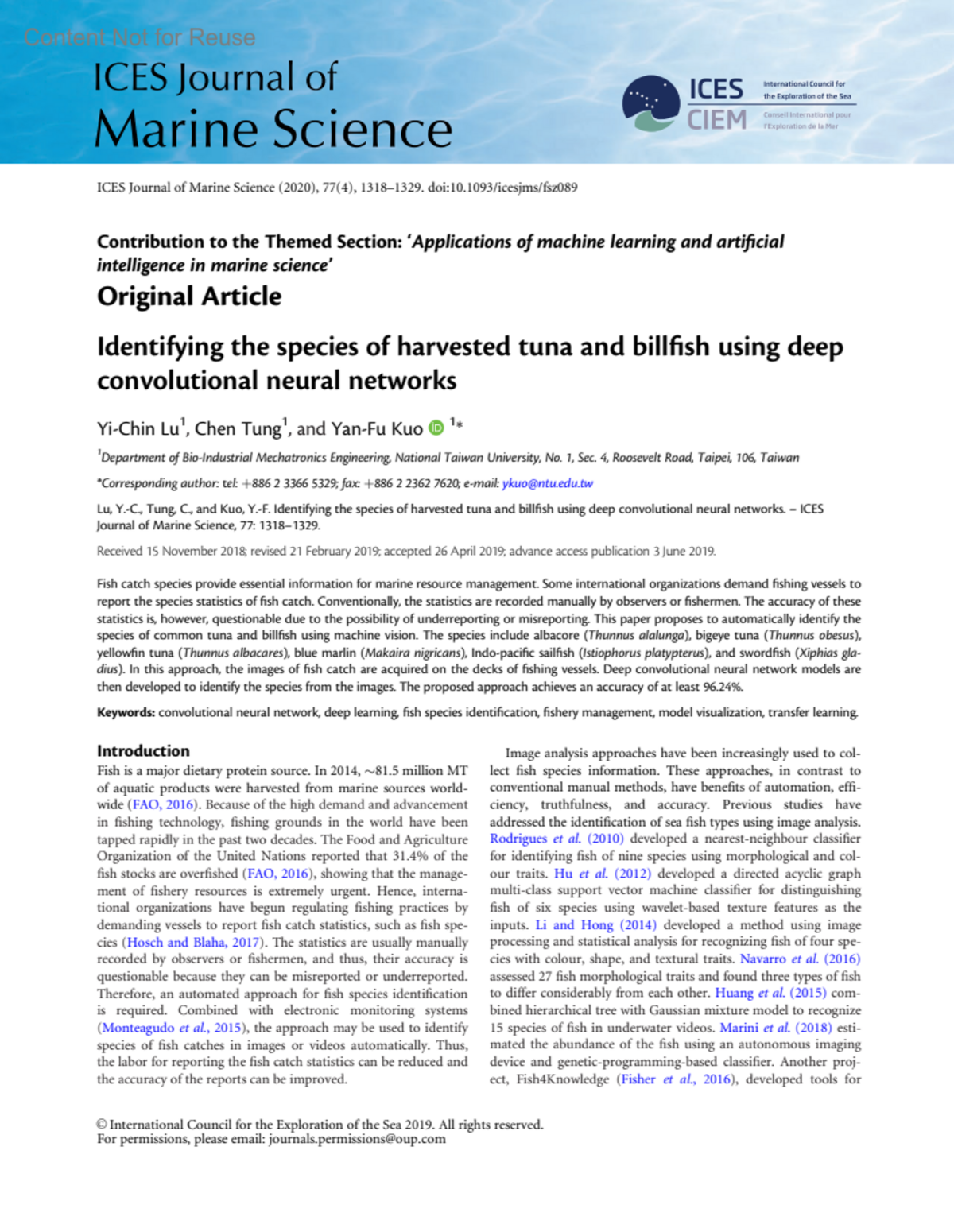 Identifying the species of harvested tuna and billfish using deep convolutional neural networks