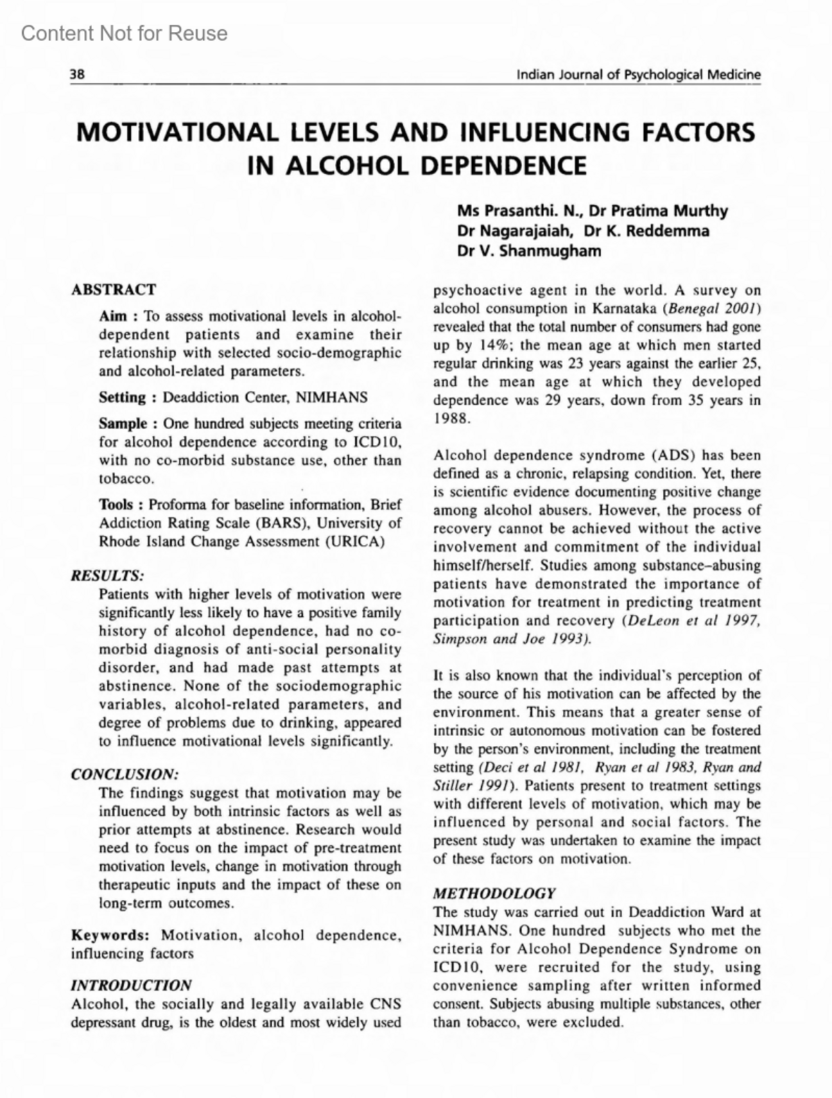 Indian Journal of Psychological Medicine 29(2):p 38-42, July 2007. | DOI: 10.1177/0975156420070205