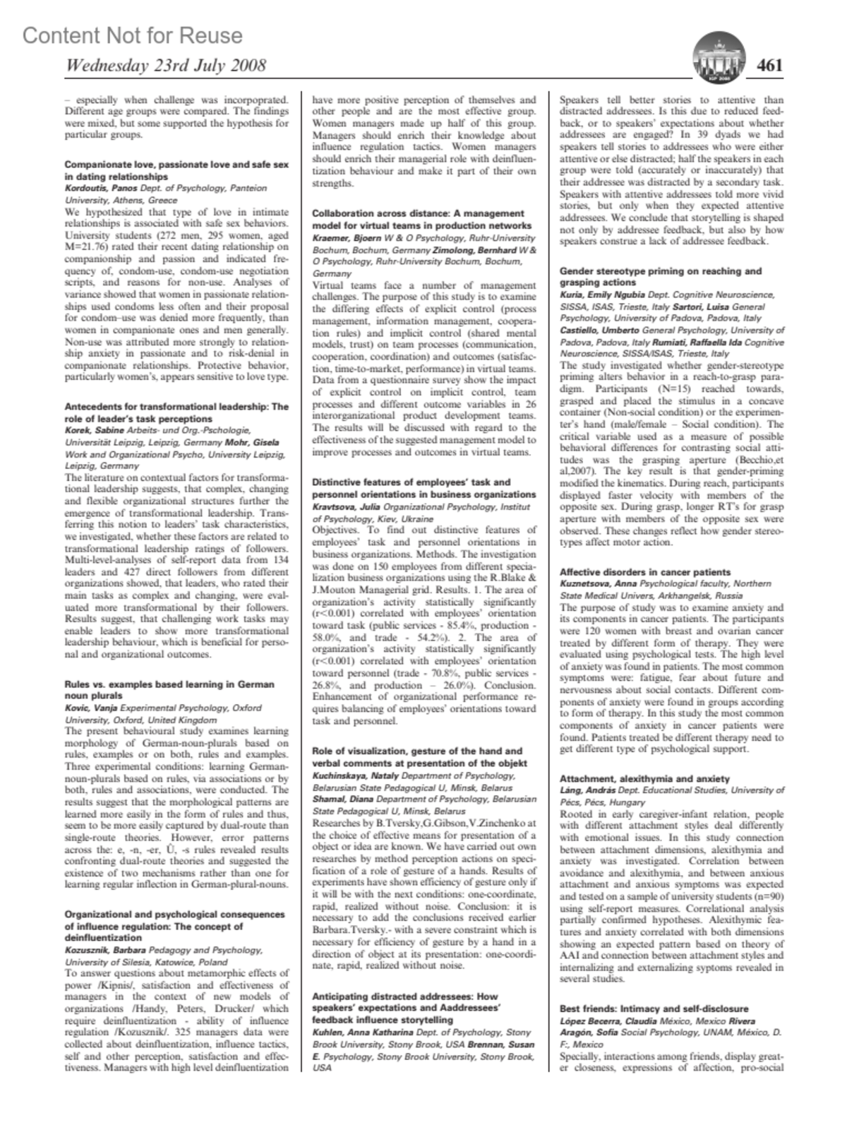 International Journal of Psychology 43(4):p 461, June-July-August 2008.