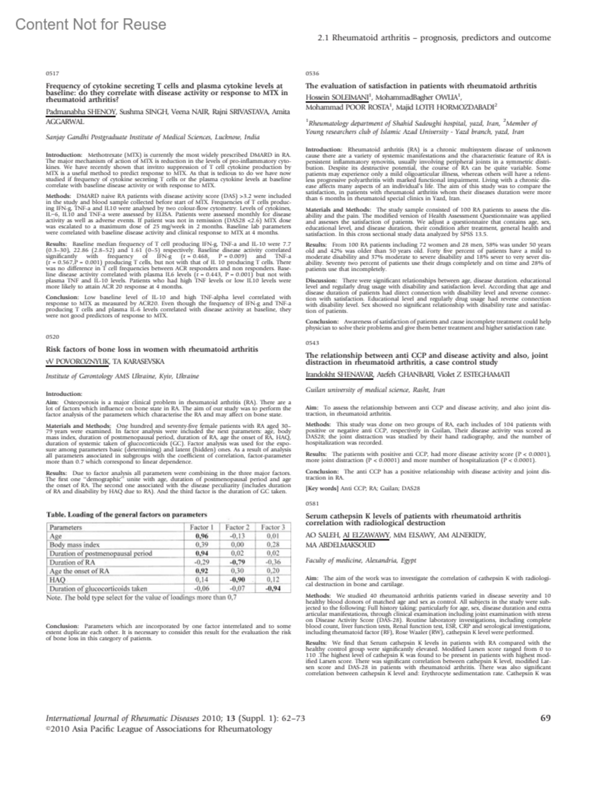 International Journal of Rheumatic Diseases 13:p 69-70, July 2010.
