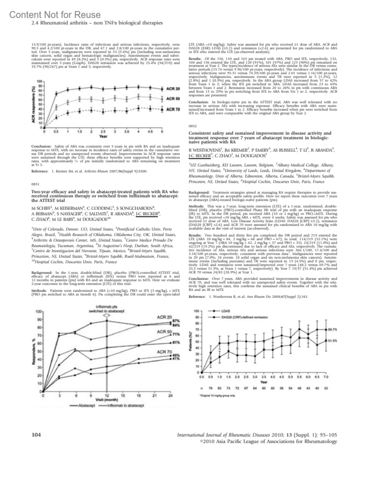 International Journal of Rheumatic Diseases 13:p 104, July 2010.