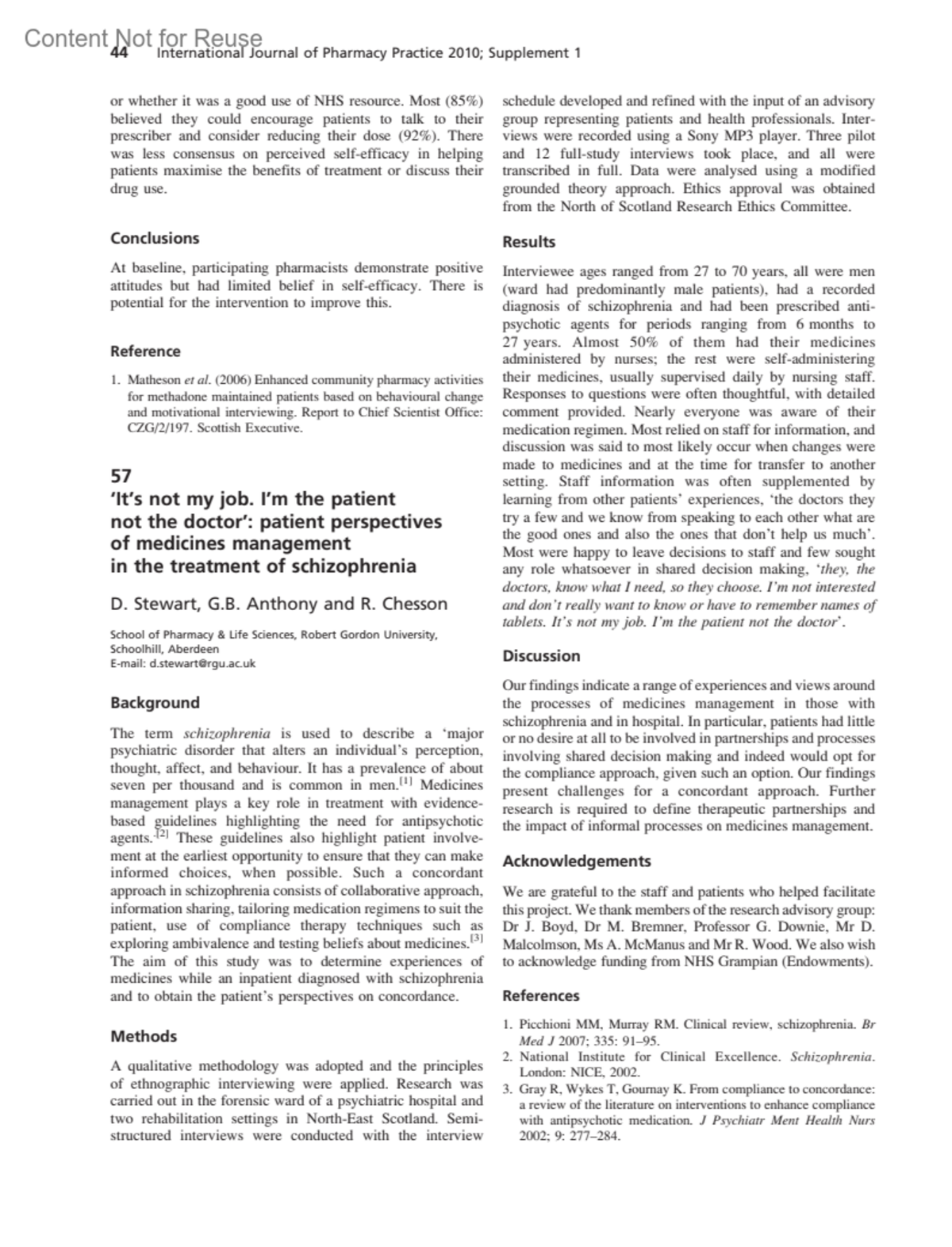 International Journal of Pharmacy Practice 18:p 44, June 2010.