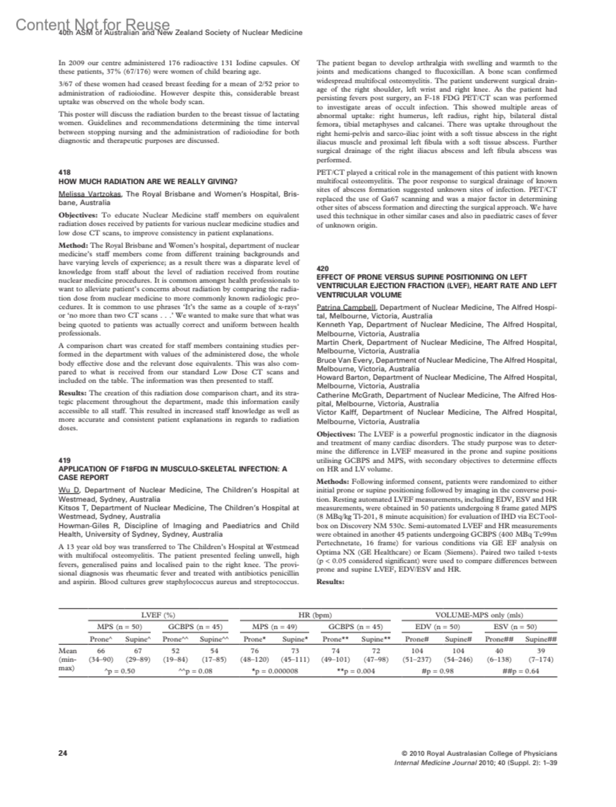 Internal Medicine Journal 40:p 24-25, April 23, 2010.
