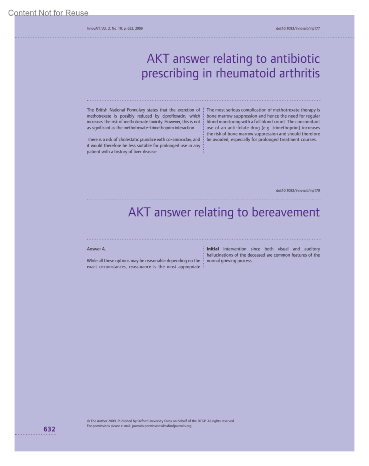 AKT answer relating to antibiotic prescribing in rheumatoid arthritisInnovAiT 2(10):p 632, October 2009.Copyright © Copyright Oxford University Press 2009.