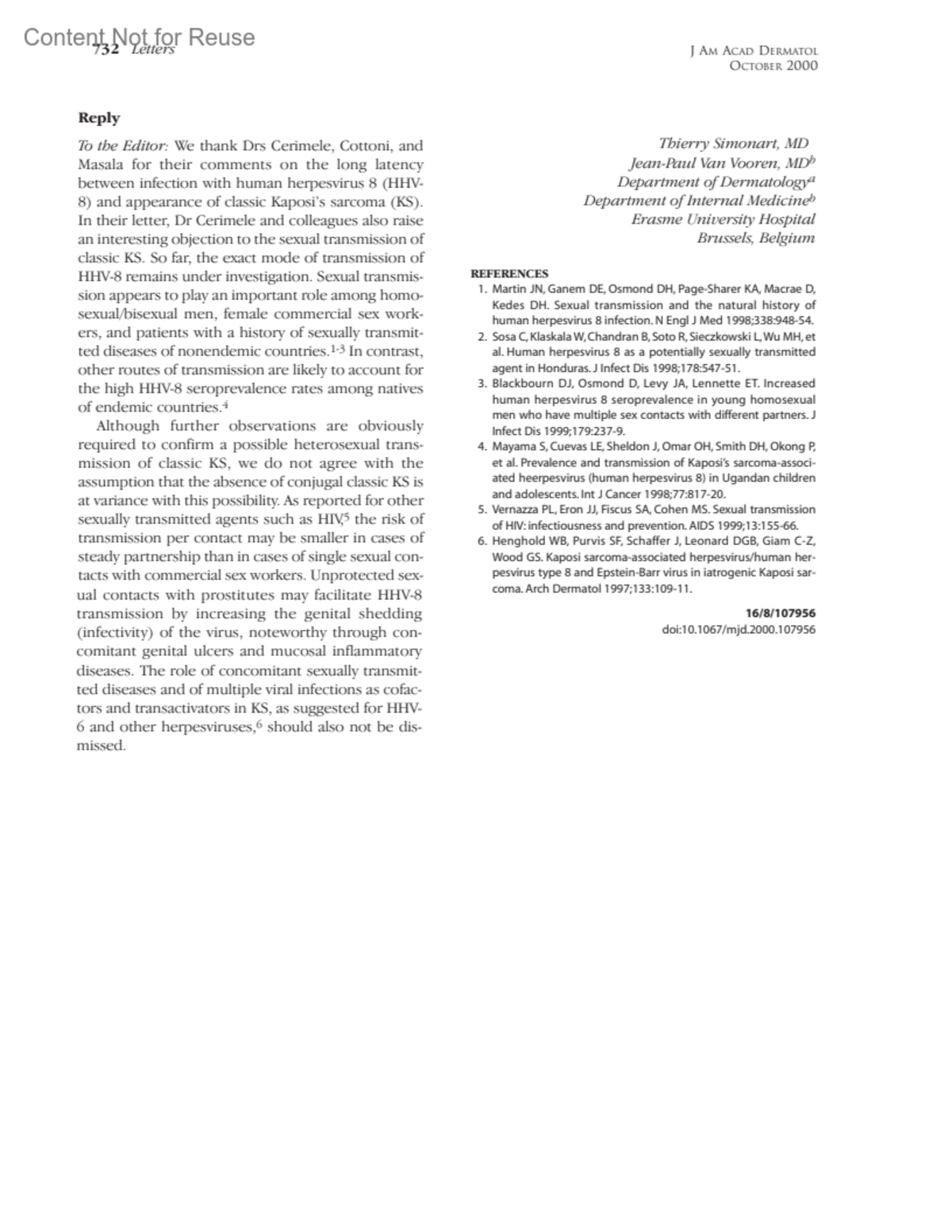Journal of the American Academy of Dermatology 43(4):p 732, October 2000.
