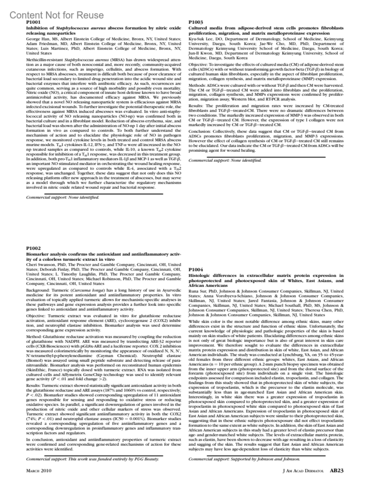 Journal of the American Academy of Dermatology 62(3):p AB23, March 2010.