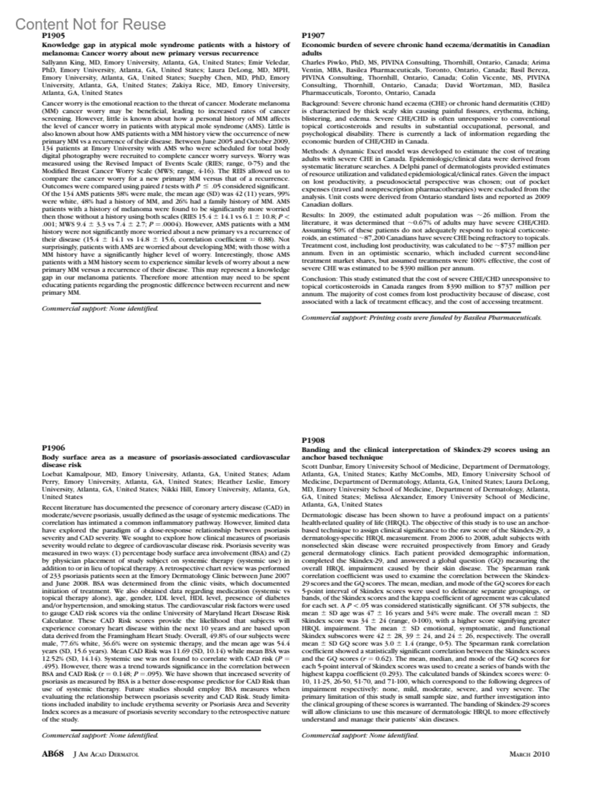 Journal of the American Academy of Dermatology 62(3):p AB68, March 2010.
