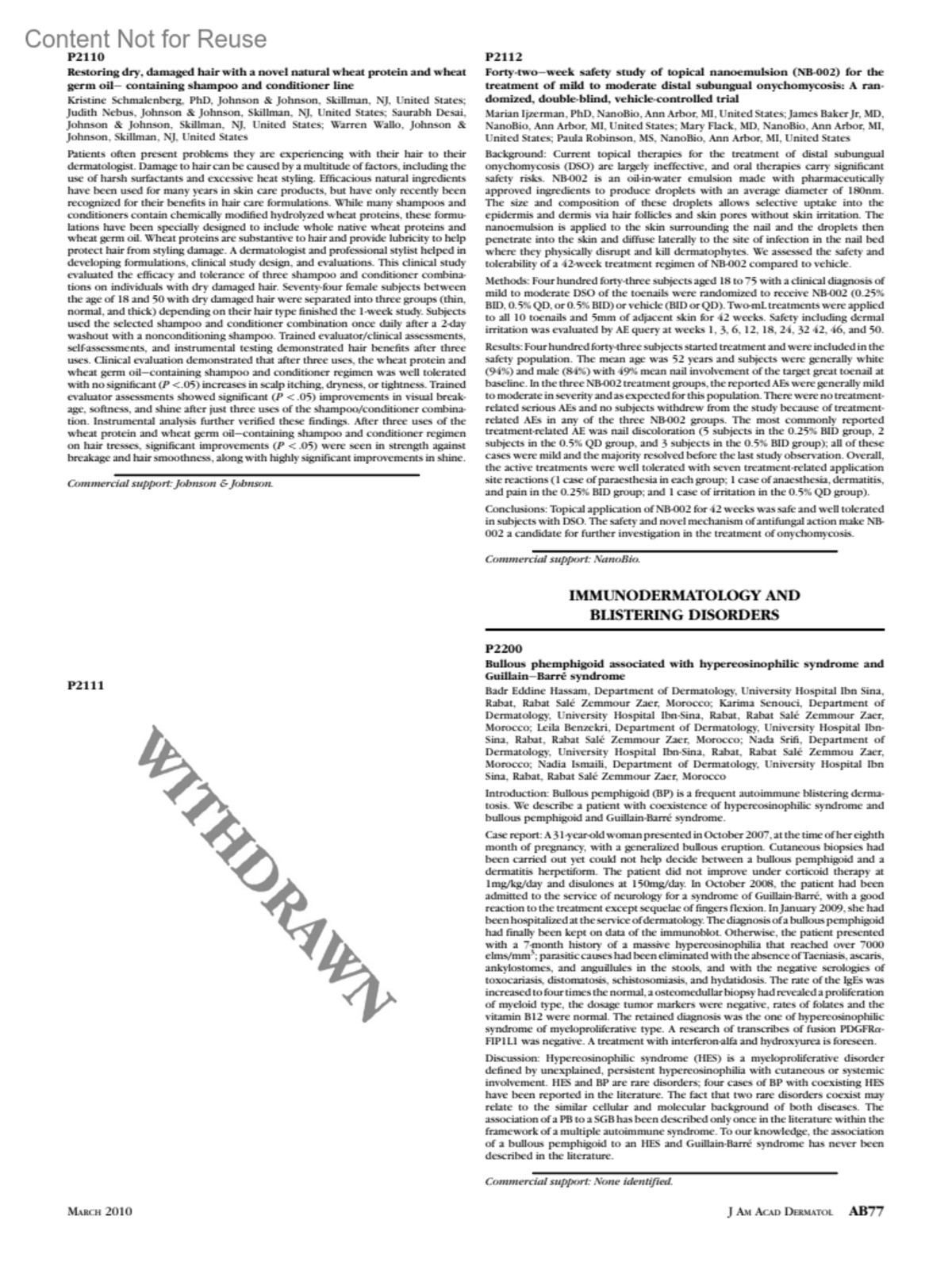 Journal of the American Academy of Dermatology 62(3):p AB77, March 2010.
