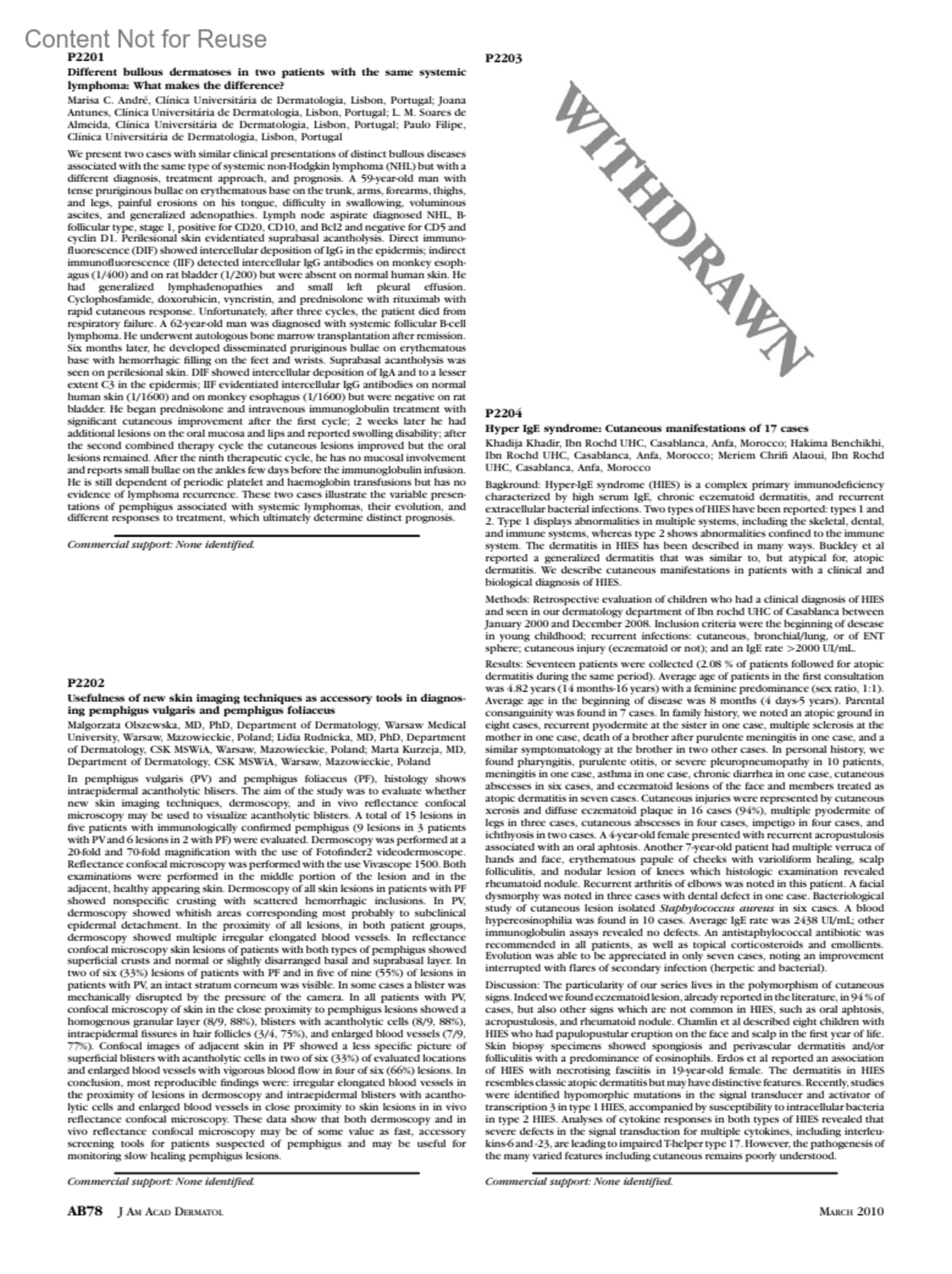 Journal of the American Academy of Dermatology 62(3):p AB78, March 2010.