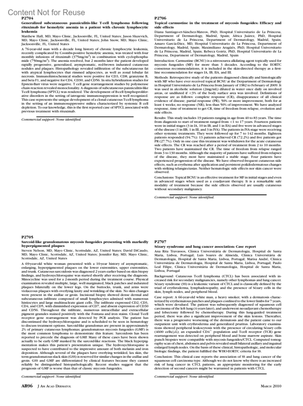 Journal of the American Academy of Dermatology 62(3):p AB96, March 2010.