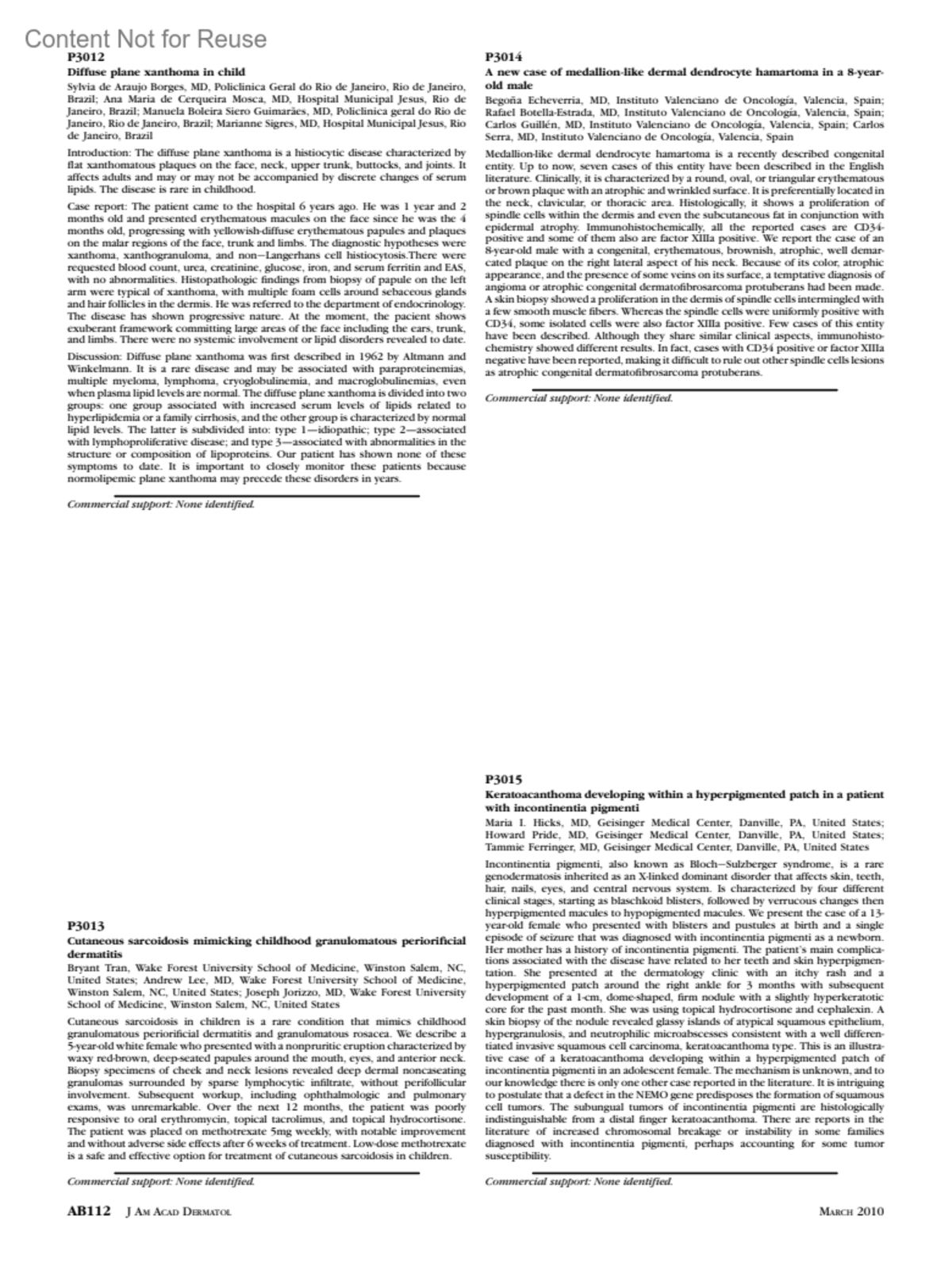 Journal of the American Academy of Dermatology 62(3):p AB112, March 2010.