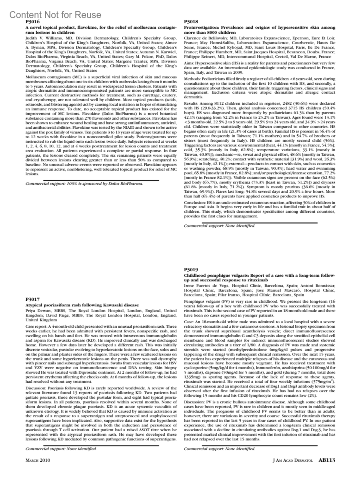 Journal of the American Academy of Dermatology 62(3):p AB113, March 2010.