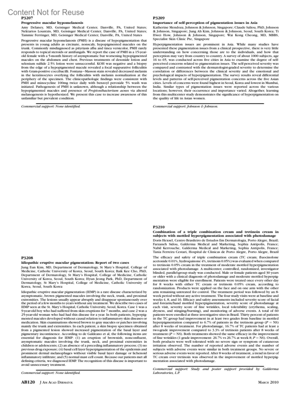 Journal of the American Academy of Dermatology 62(3):p AB120, March 2010.