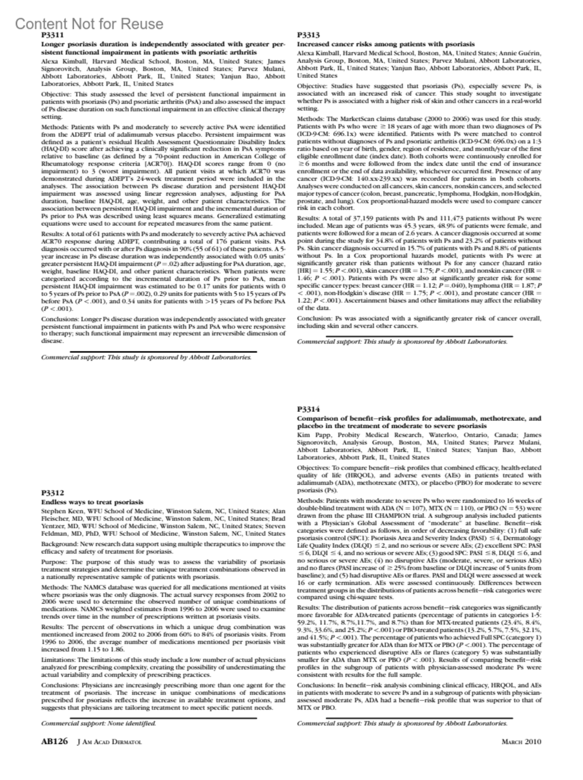 Journal of the American Academy of Dermatology 62(3):p AB126, March 2010.
