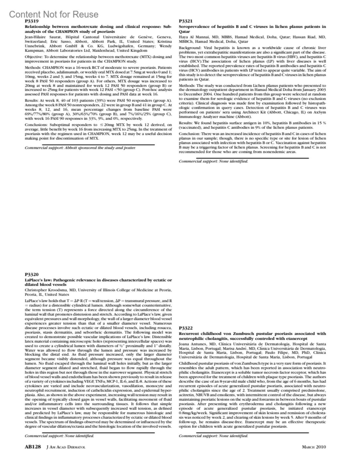 LaPlace's law: Pathogenic relevance in diseases characterized by ectatic or dilated blood vesselsP3320Kroodsma, Christopher MDAuthor informationUniversity of Illinois College of Medicine at Peoria, Peoria, IL, United StatesCommercial support: None identified.Journal of the American Academy of Dermatology 62(3):p AB128, March 2010.Copyright © 2010 by Mosby, Inc.