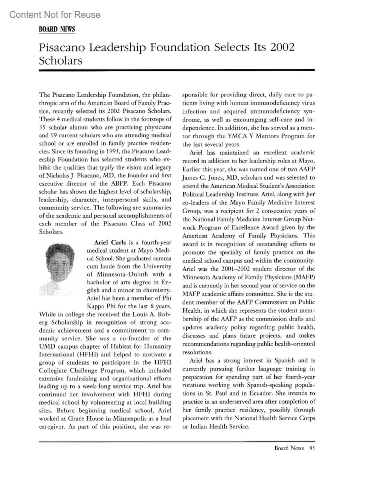 Pisacano Leadership Foundation Selects Its 2002 ScholarsJournal of the American Board of Family Practice 16(1):p 83-85, January-February 2003.Copyright © Copyright 2003 by the American Board of Family Practice.