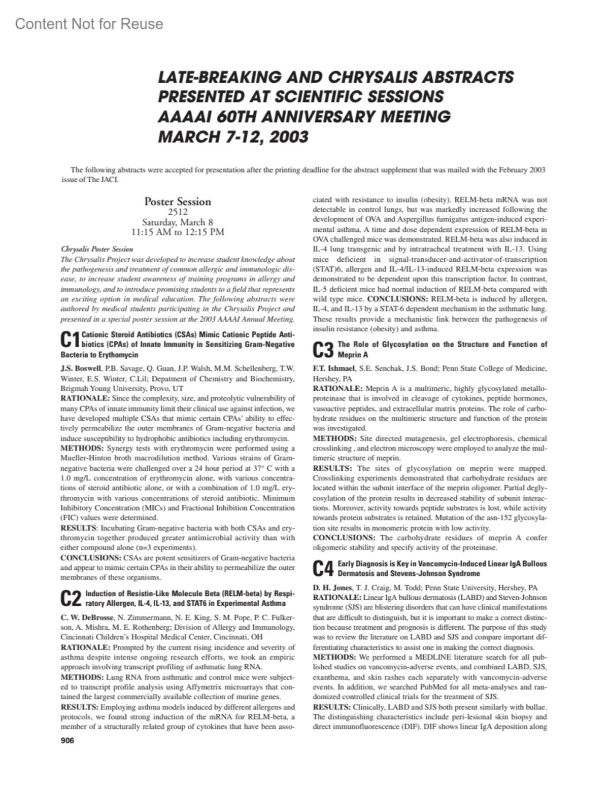 Journal of Allergy & Clinical Immunology 111(4):p 906-907, April 2003.