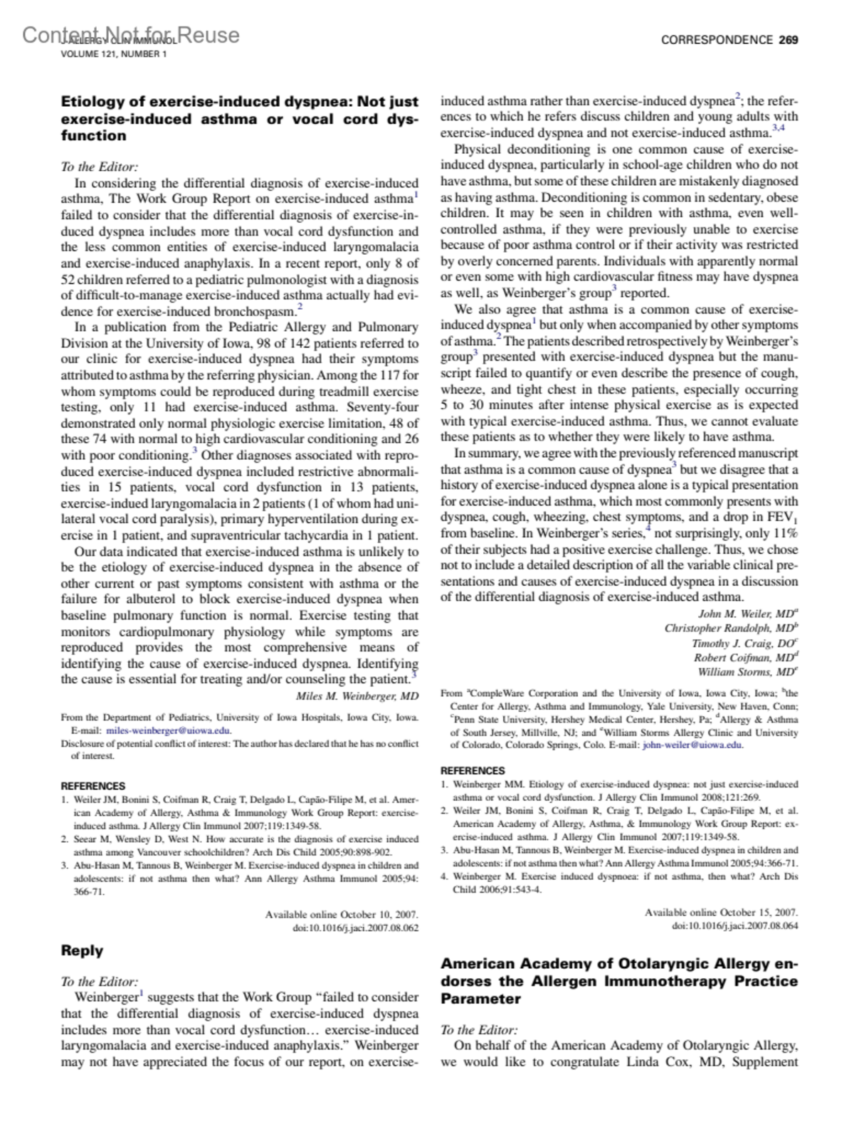Journal of Allergy & Clinical Immunology 121(1):p 269, January 2008.