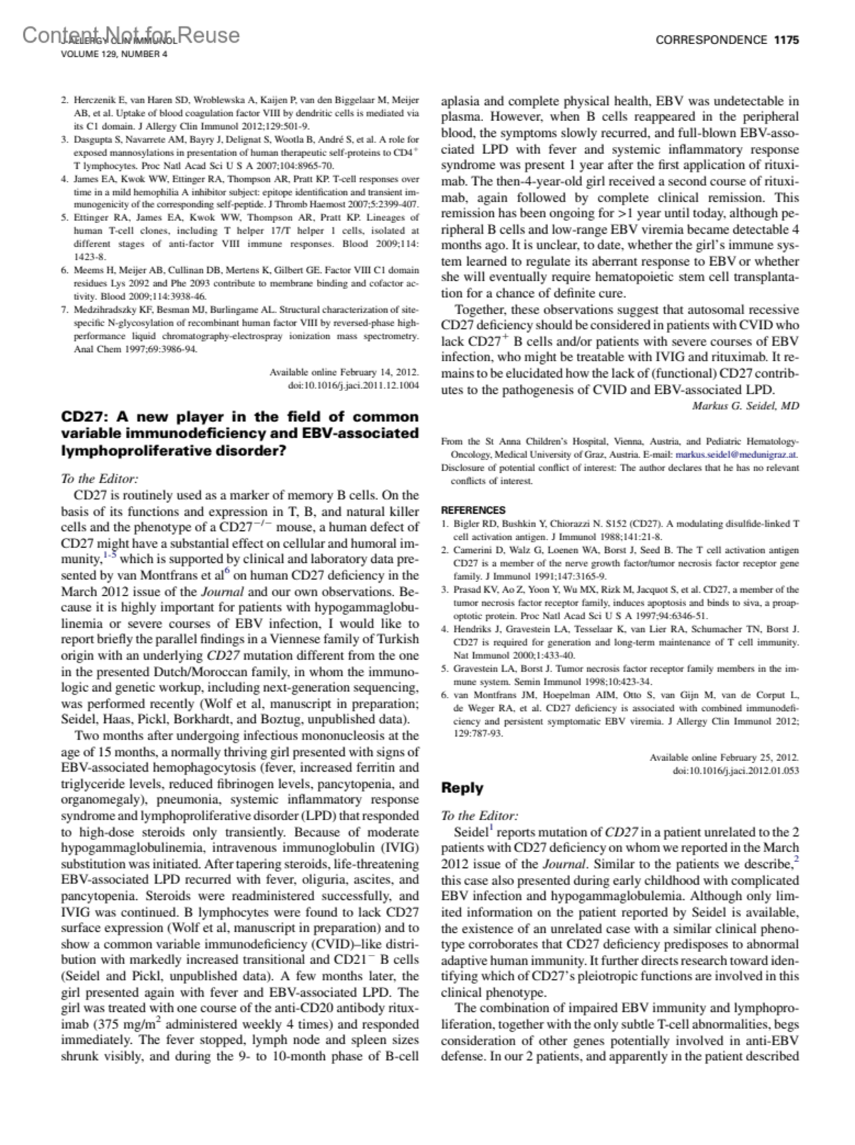Journal of Allergy & Clinical Immunology 129(4):p 1175-1176, April 2012.
