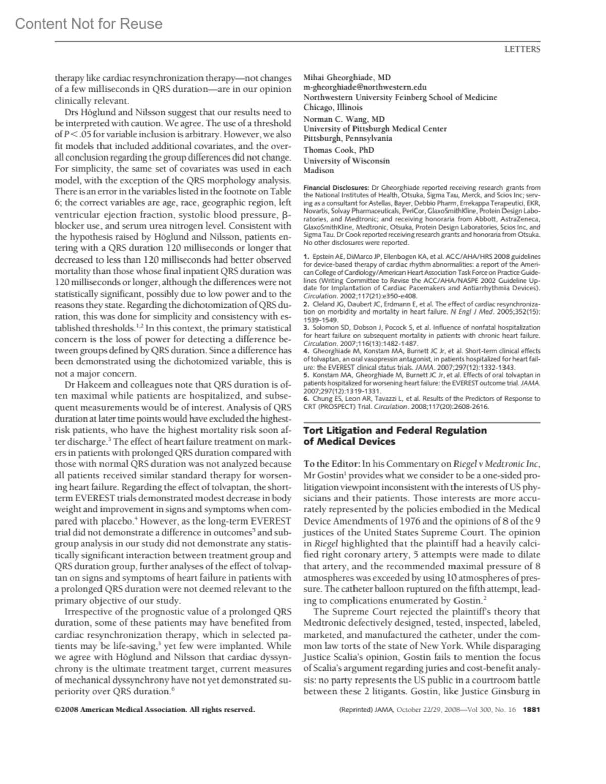 JAMA: The Journal of the American Medical Association 300(16):p 1882, October 22/29, 2008.