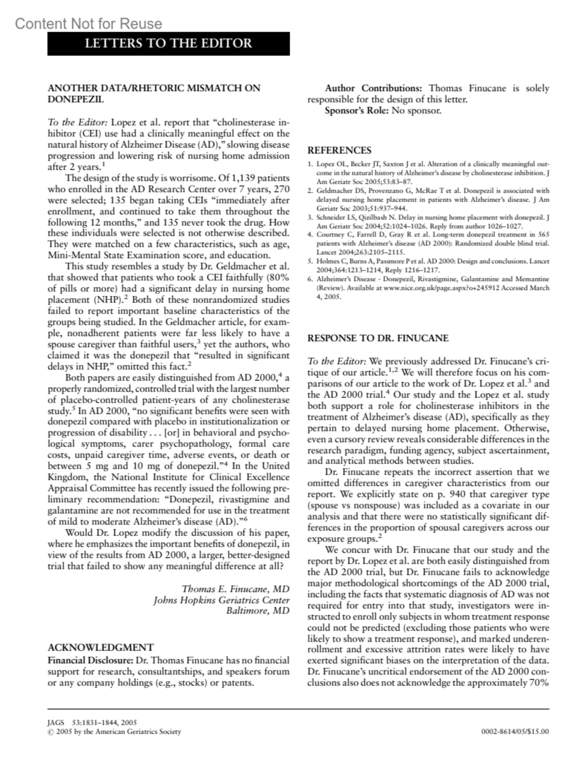 ANOTHER DATA/RHETORIC MISMATCH ON DONEPEZIL