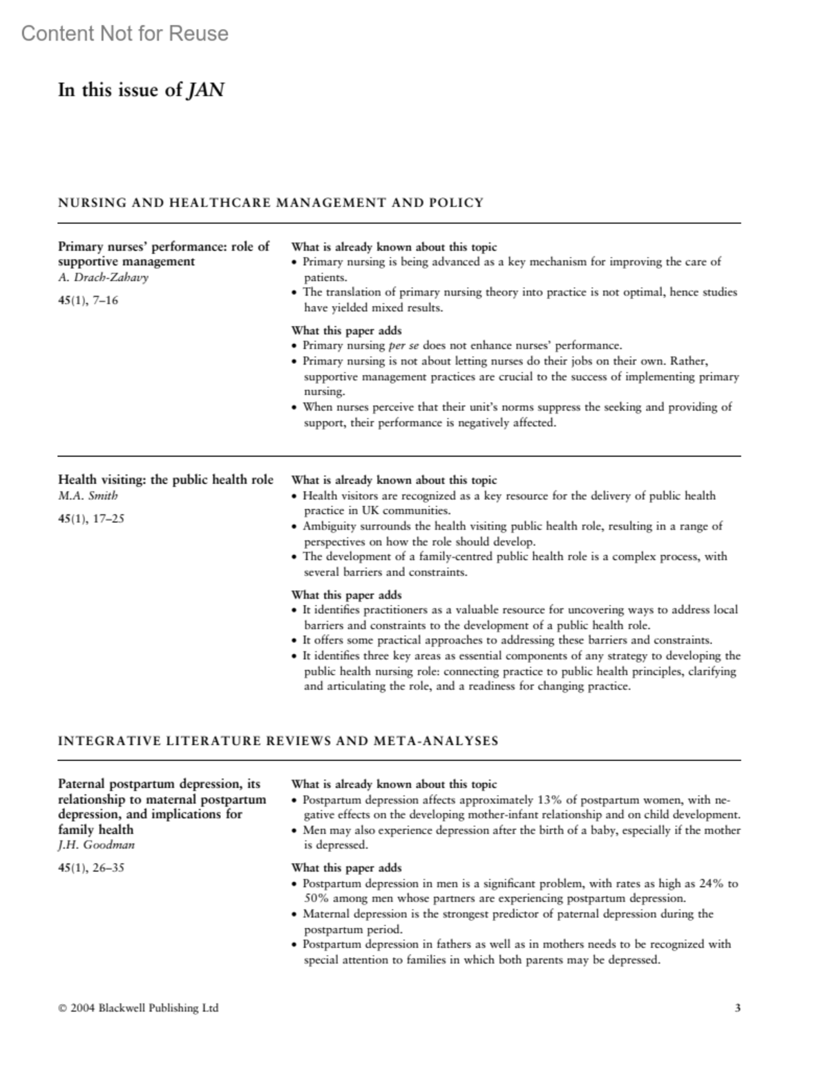 In this issue of JANJournal of Advanced Nursing 45(1):p 3-6, January 2004.Copyright © 2004 Blackwell Science Ltd.