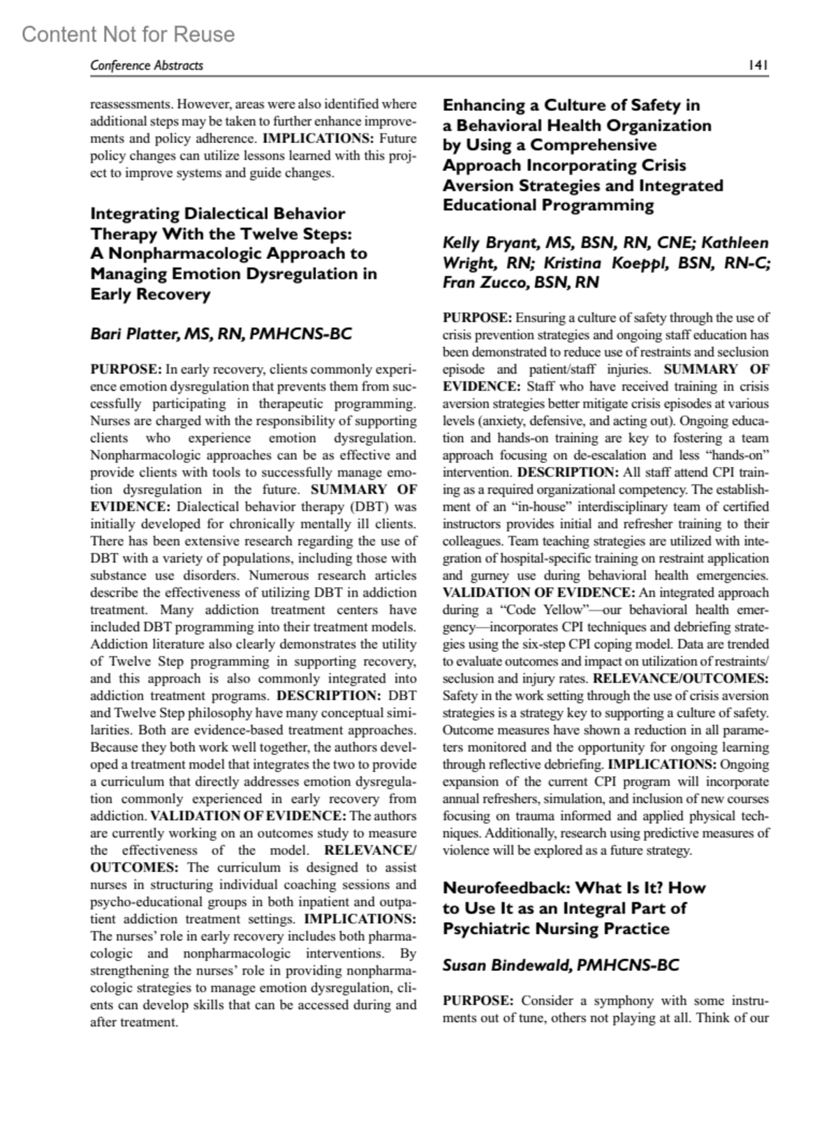 Journal of the American Psychiatric Nurses Association 22(2):p 141, March-April 2016.