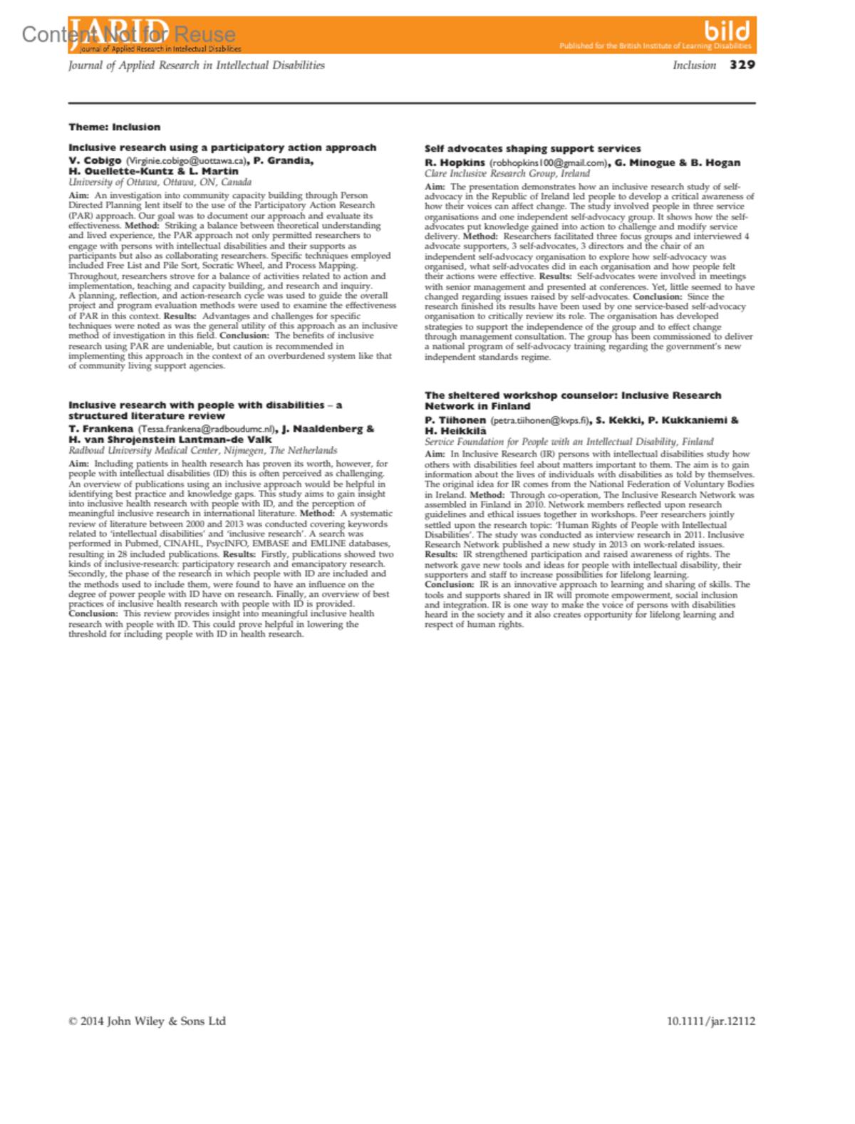 Journal of Applied Research in Intellectual Disabilities 27(4):p 329, July 2014.