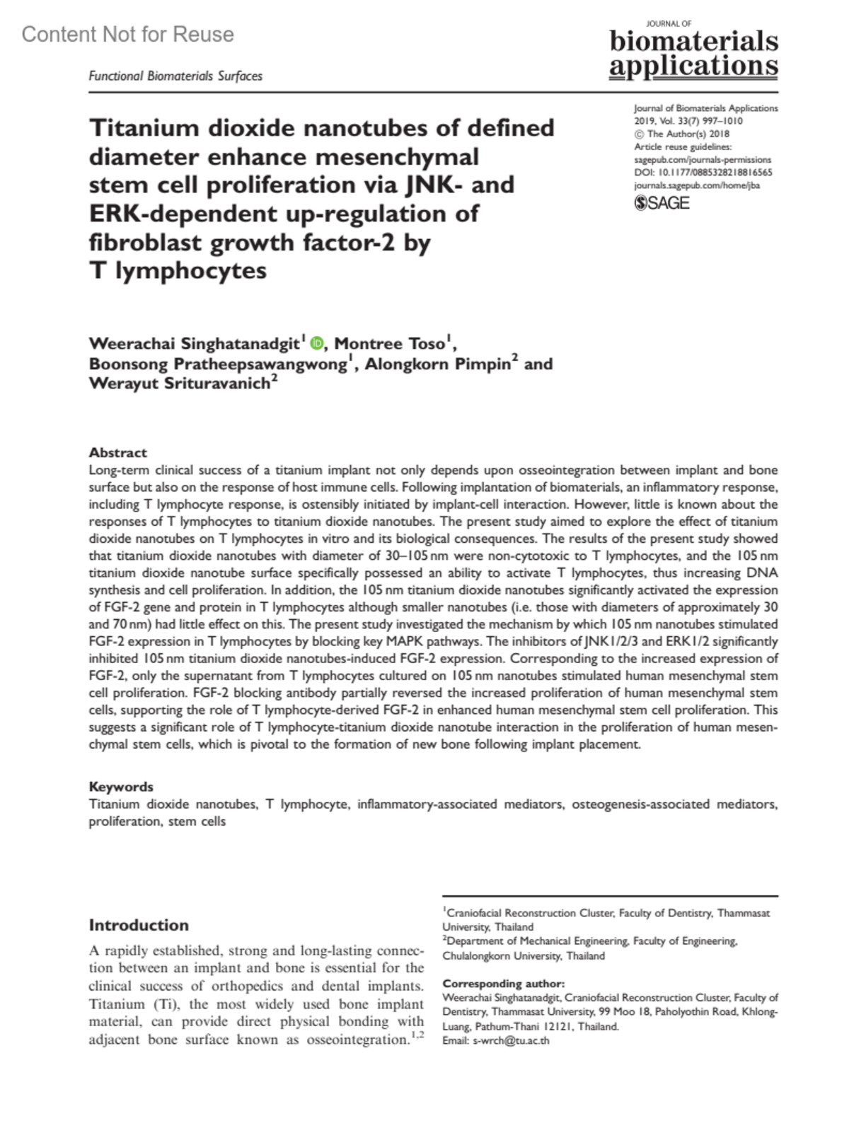 Journal of Biomaterials Applications 33(7):p 997-1010, February 2019. | DOI: 10.1177/0885328218816565