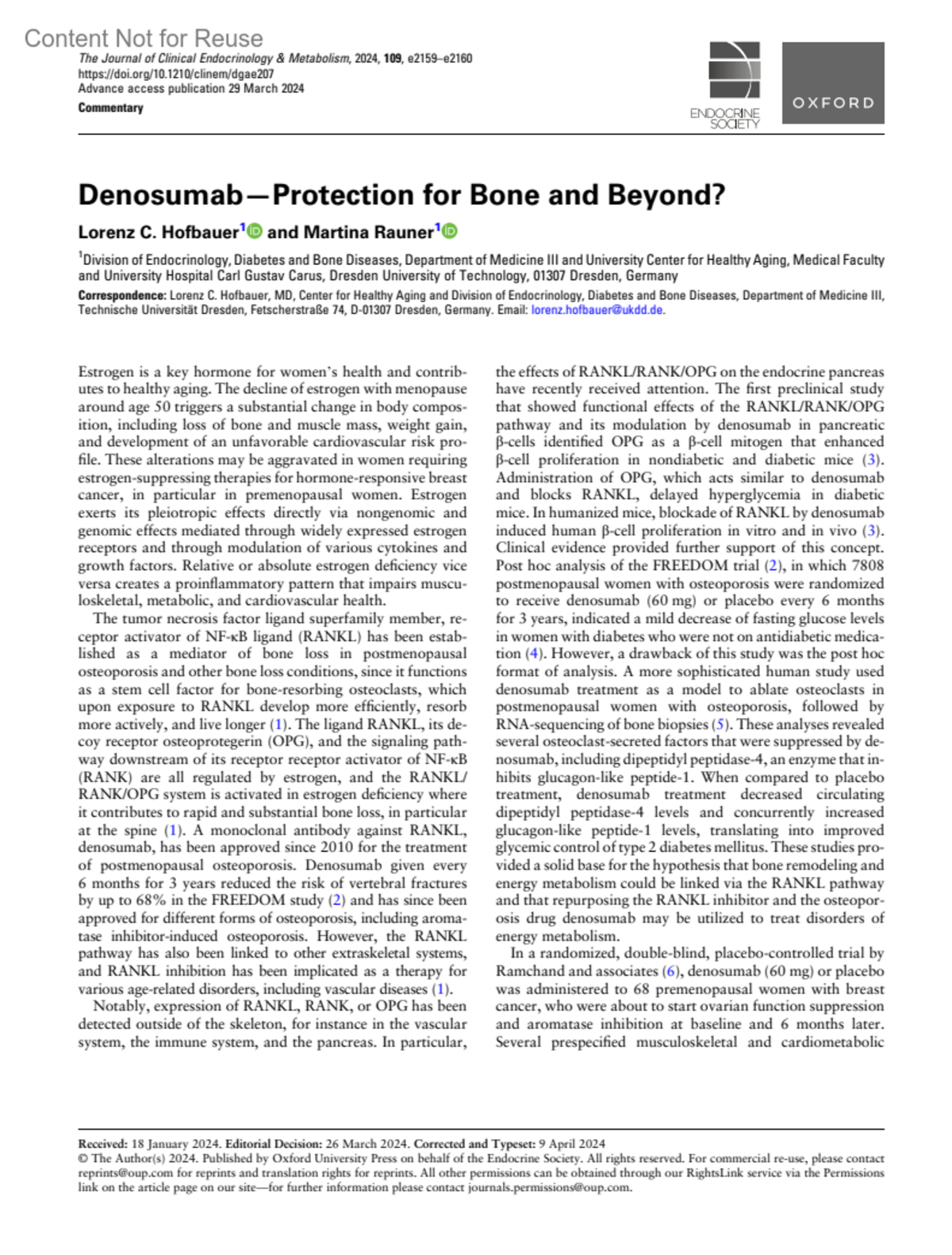 Correspondence: Lorenz C. Hofbauer, MD, Center for Healthy Aging and Division of Endocrinology, Diabetes and Bone Diseases, Department of Medicine III, Technische Universität Dresden, Fetscherstraße 74, D-01307 Dresden, Germany. Email: [email protected].