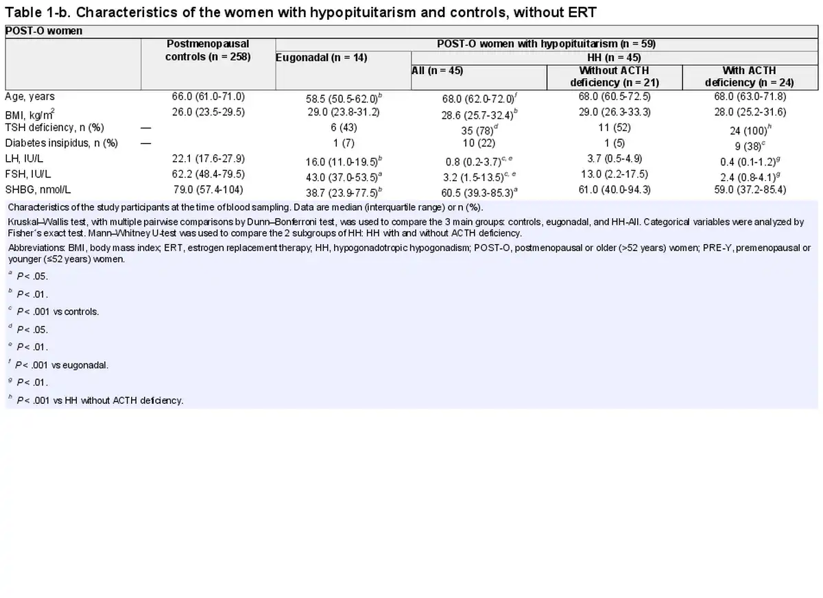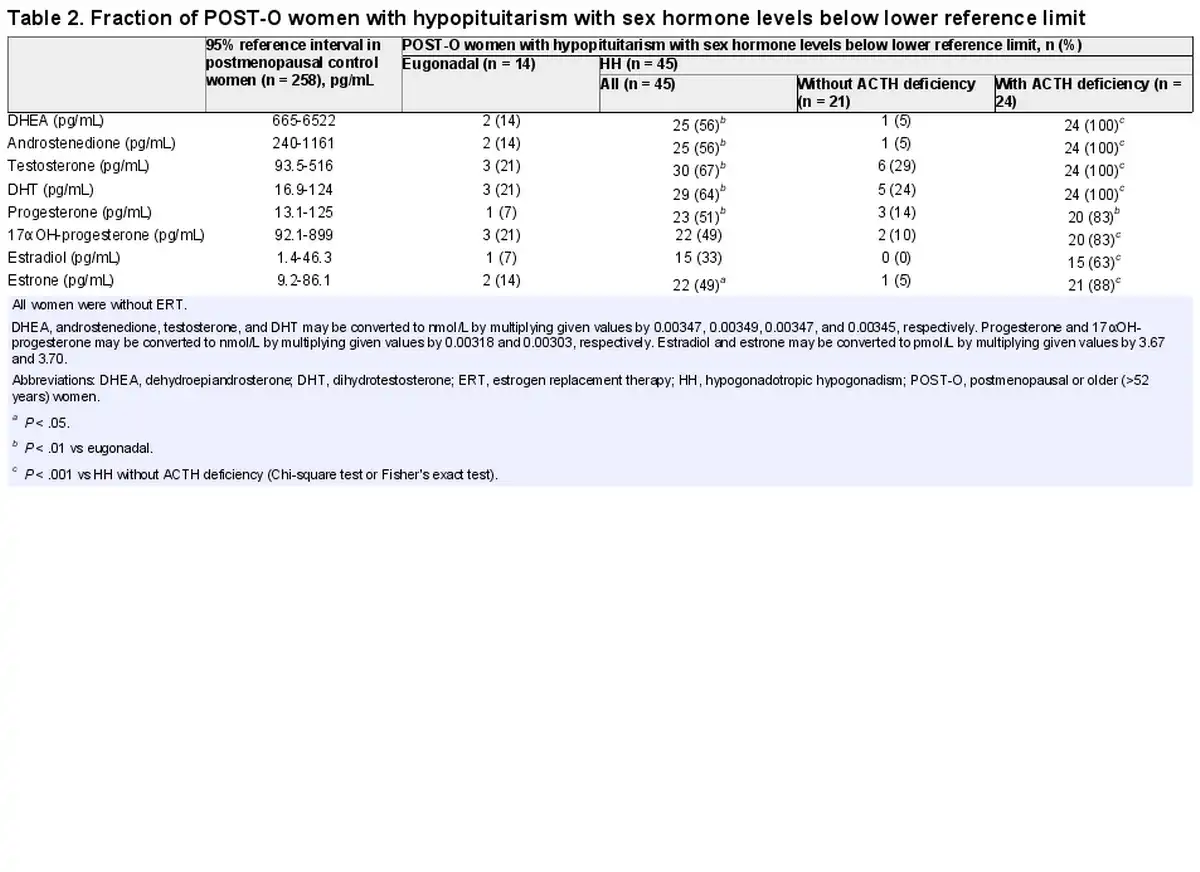 Sex Hormone Levels Below the Reference Limits in POST-O Women With Hypopituitarism
