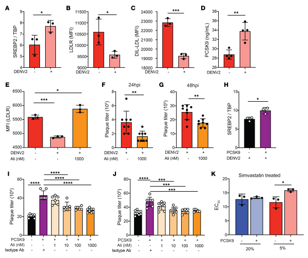 PCSK9 augments DENV infection and dampens the antiviral effect of statins.