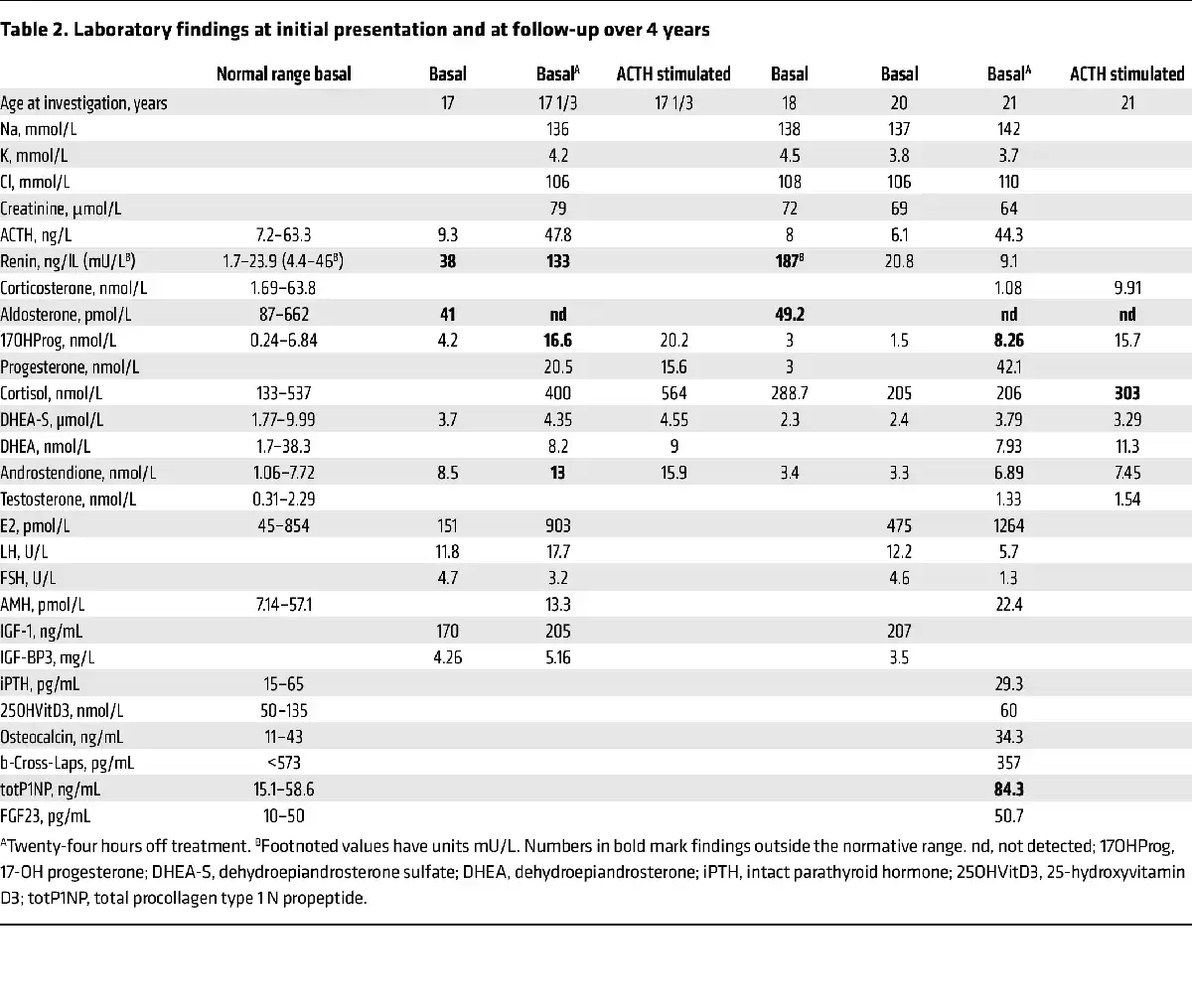 Of note, 2 cousins with the same clinical phenotype (one female and one male) are alive and being treated with steroid replacement therapy in Syria; however, they were not available for investigations. A detailed description of the clinical findings is provided in the Supplemental Appendix.