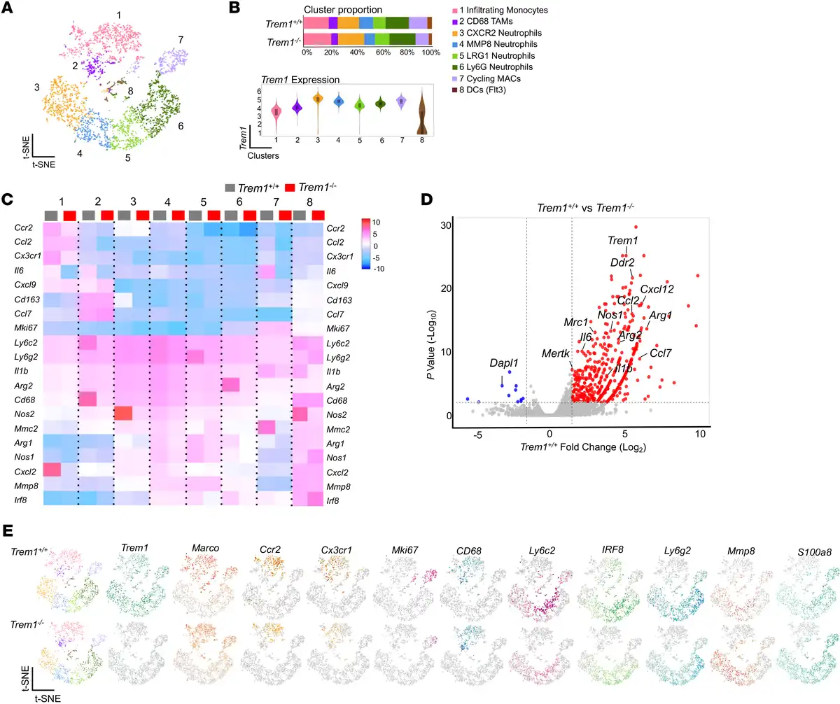 scRNA-Seq analysis reveals alterations in immune landscape of TREM1-deficient TME in B16F10 melanoma.