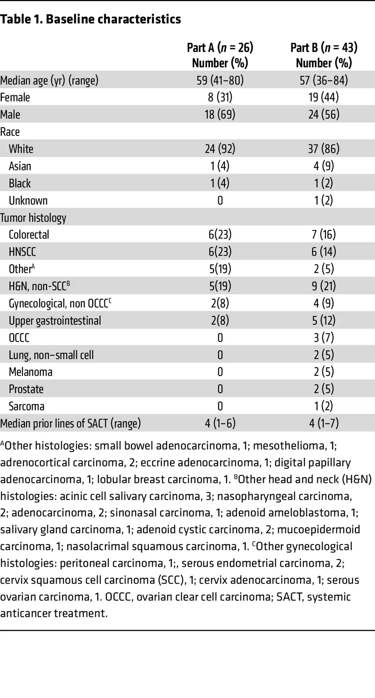Patients were 18 years and over, with advanced solid malignancy, without standard anticancer treatment options. All had Eastern Cooperative Oncology Group (ECOG) (https://ecog-acrin.org/resources/ecog-performance-status/) performance status 0–1, life expectancy of at least 3 months, and adequate organ function. Key inclusion criteria are provided in the Supplemental Methods.