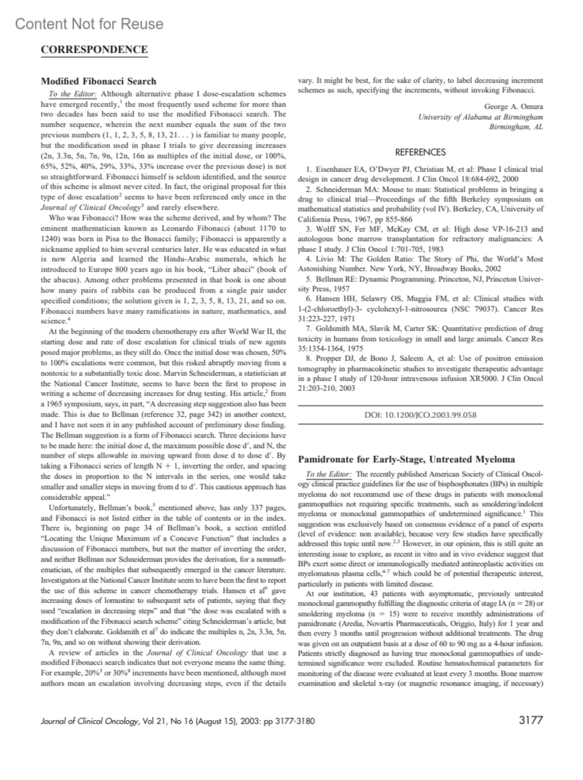 Journal of Clinical Oncology 21(16):p 3179, August 15, 2003.