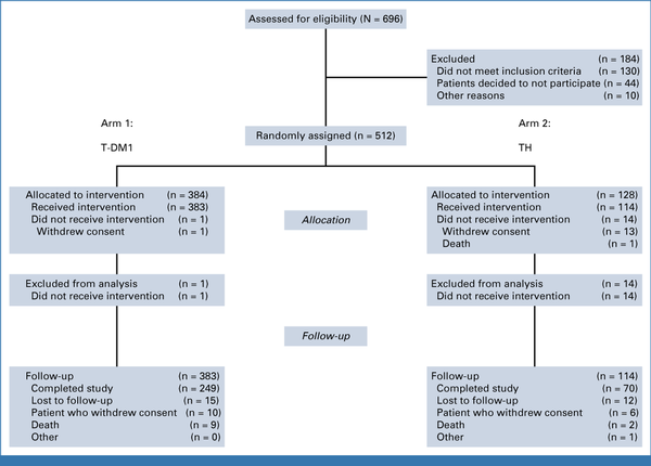 CONSORT diagram. T-DM1, trastuzumab emtansine; TH, paclitaxel plus trastuzumab.
