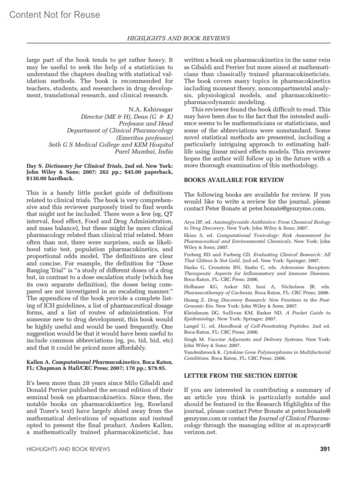 LETTER FROM THE SECTION EDITORThe Journal of Clinical Pharmacology 48(3):p 391, March 2008.Copyright © 2008 American College of Clinical Pharmacology