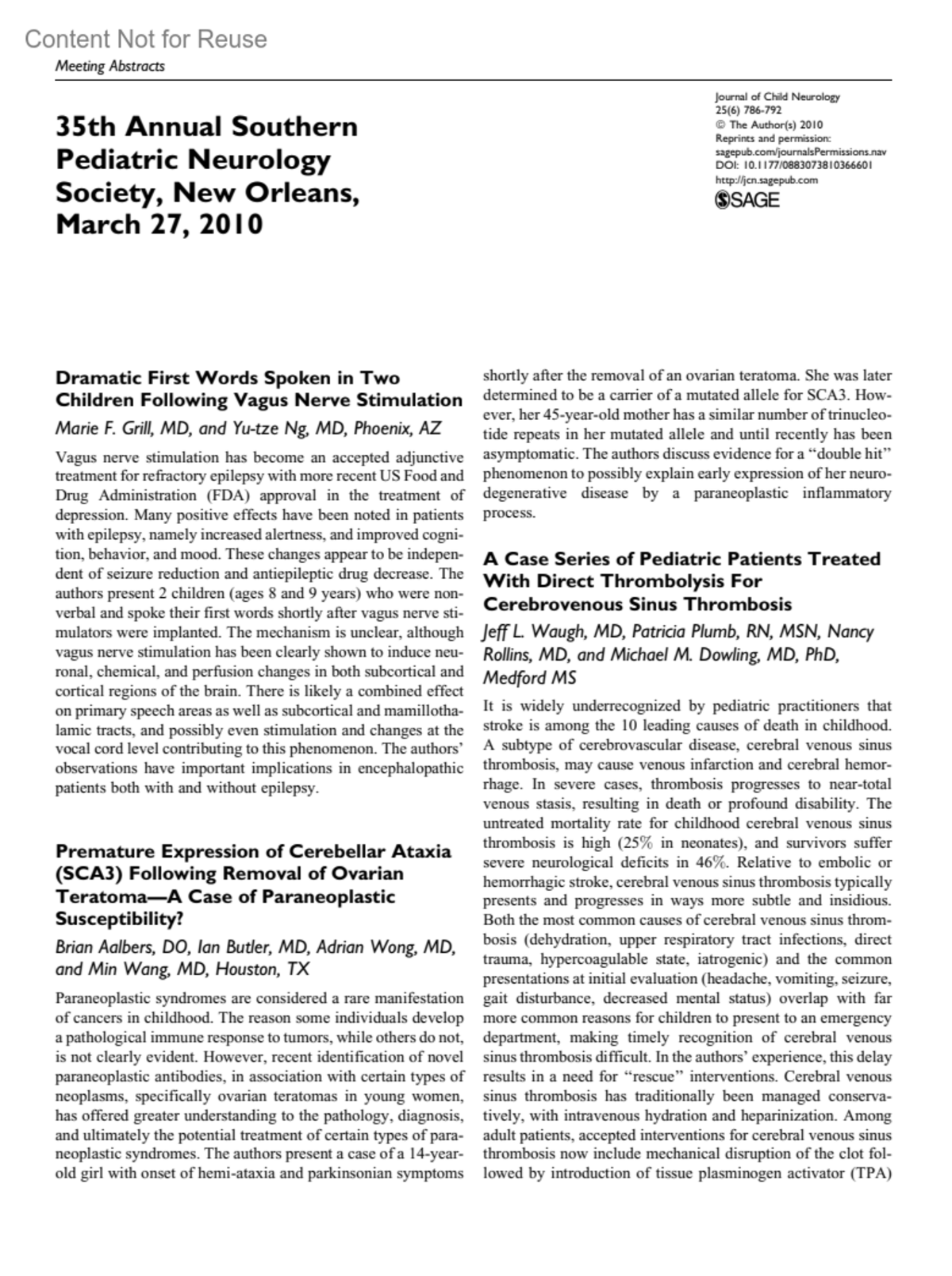 35th Annual Southern Pediatric Neurology Society, New Orleans, March 27, 2010