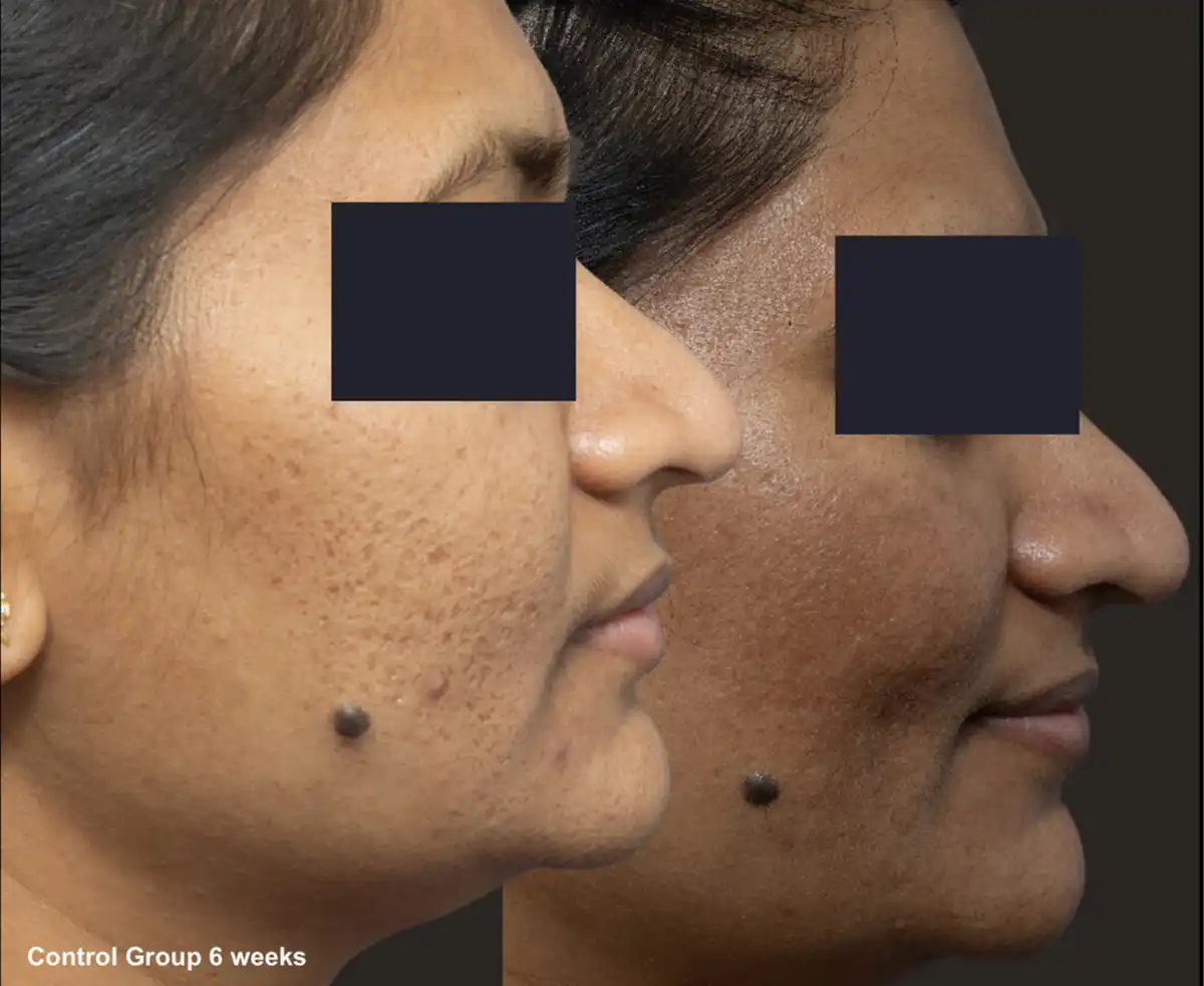 Patients were instructed to discontinue all topical creams 4 weeks prior to the study, including Vitamin A analogues, bleaching agents, and exfoliants.