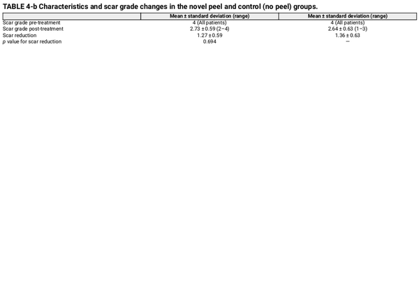 Healing time (re‐epithelization) and changes in acne scar grading were analyzed using the Goodman and Baron scale. At baseline, patients had grade 4 scars, which were visible at conversational distances and could not be stretched or concealed by normal facial hair growth.