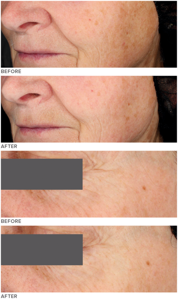 Photographic analysis of two subjects: top: skin clarity and redness reduction after 28 days of treatment; bottom: significant improvement in skin pigmentation after 28 days