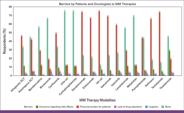 The financial burden for patients was the top-cited barrier for isatuximab (69%), elotuzumab (67%), selinexor (66%), ixazomib (59%), daratumumab (58%), and carfilzomib (49%).