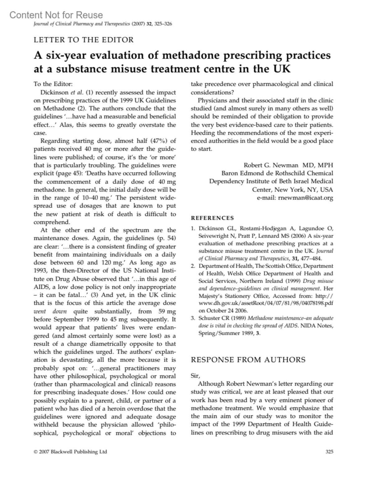 Journal of Clinical Pharmacy & Therapeutics 32(3):p 325-326, June 2007.