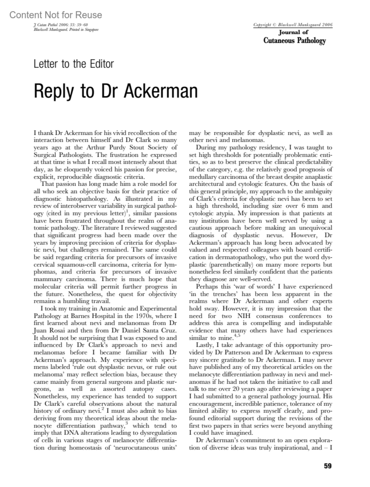Interpretation and recollection differentCramer, Stewart F.Author informationDepartment of Pathology, Rochester General Hospital, Rochester, NewYorke-mail: [email protected]Journal of Cutaneous Pathology 33(1):p 59-60, January 2006.Copyright © 2006 Blackwell Publishing Ltd.